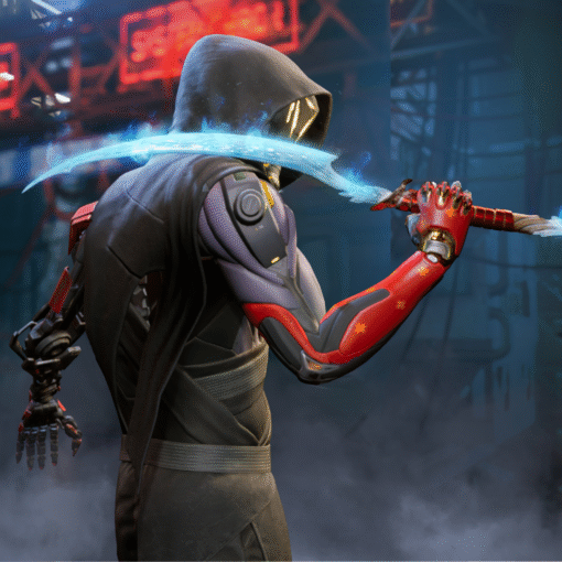 - Players assume the role of an android ninja, and use a combination of abilities and melee katana combat to slice foes as they ascend treacherous neon cyberpunk skyscrapers of the future